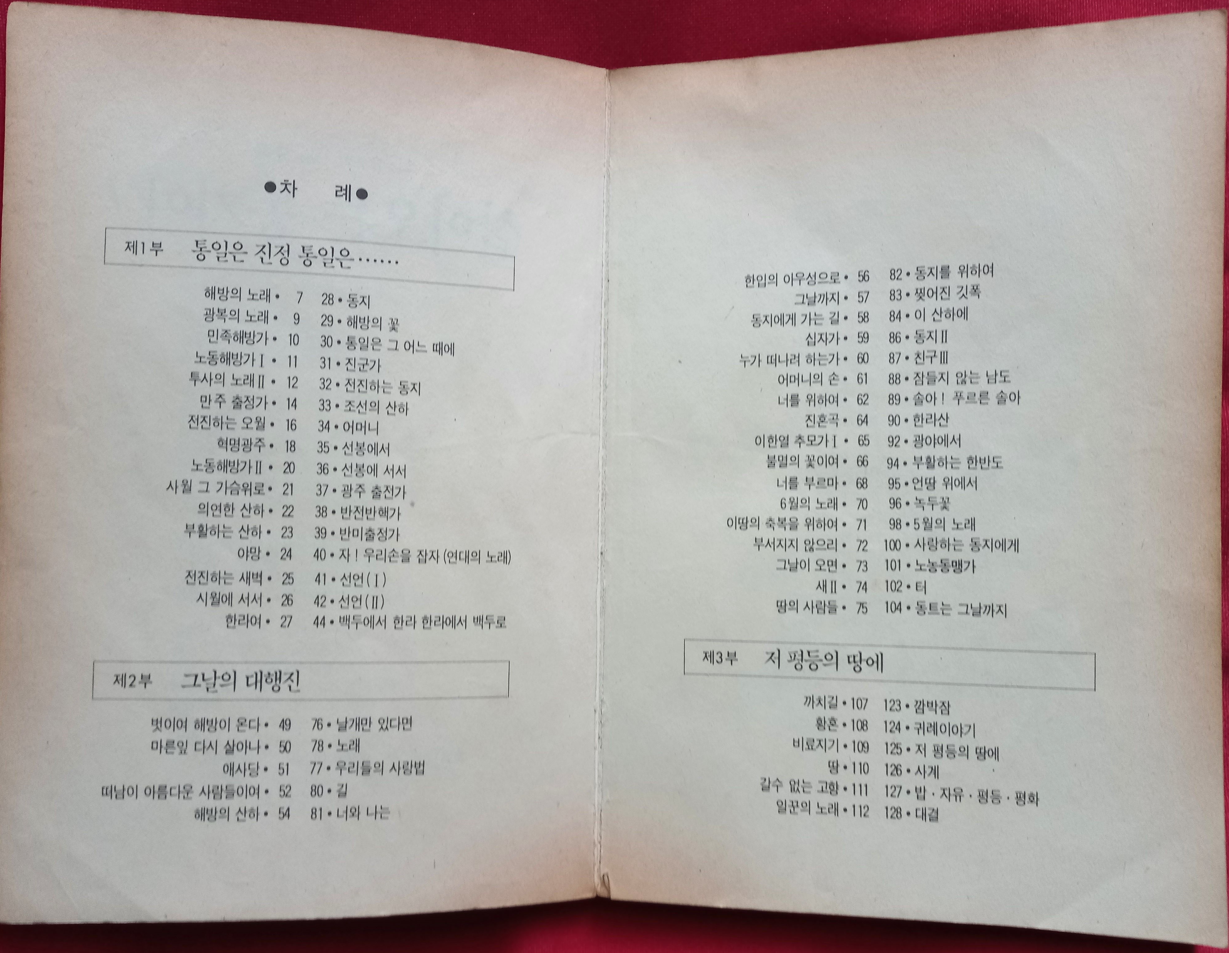사전검열을 피해 순화된 노래만 실어 마치 구전가요의 리스트 같다.