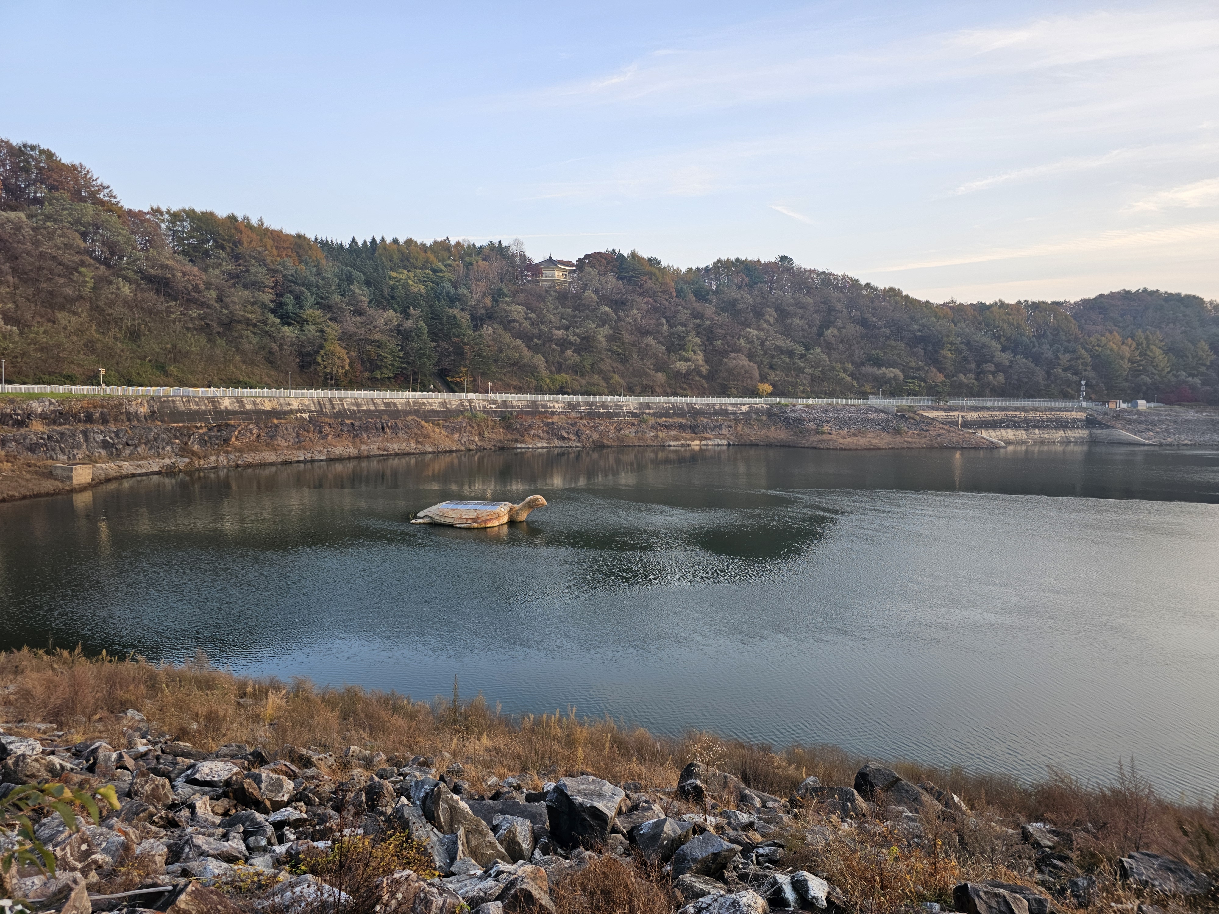 국내 최초로 건설된 양수발전소의 상부 저수지인 호명호수.