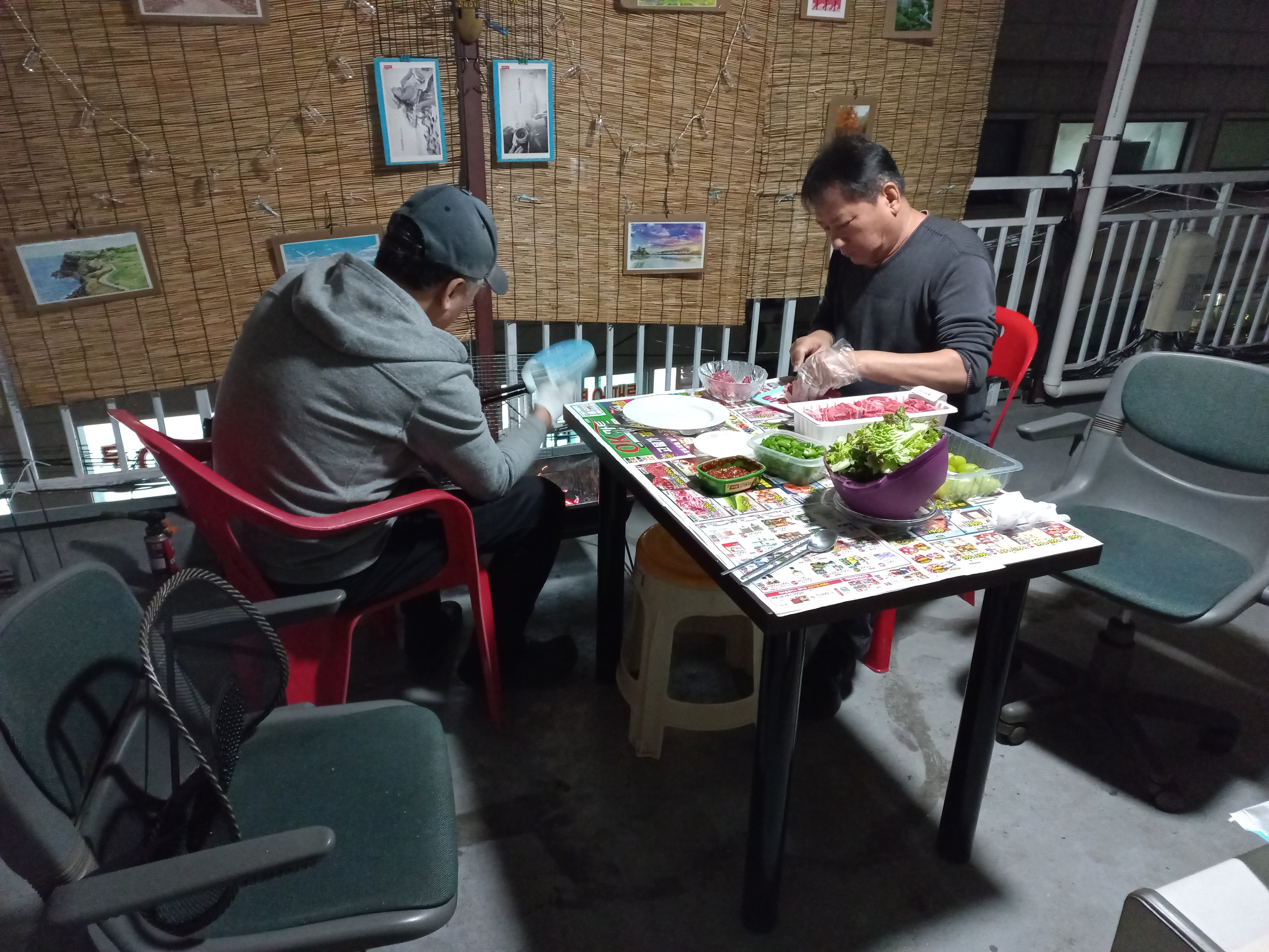 소박하게 부르스타에 삼겹살이나 구어먹으며 담소를 나누려고 했는데